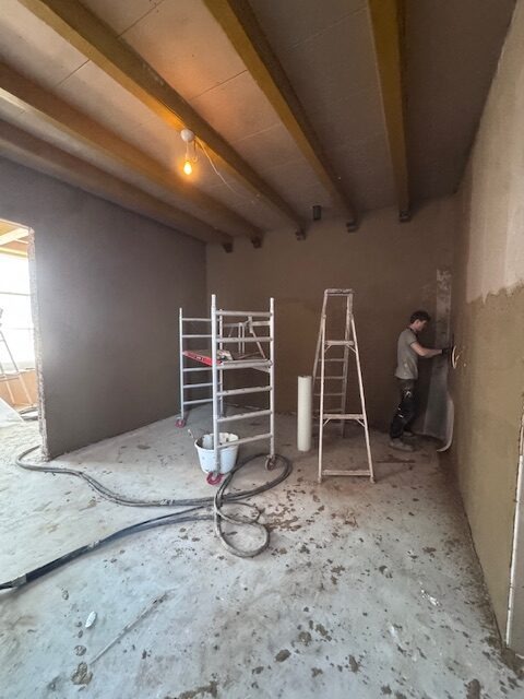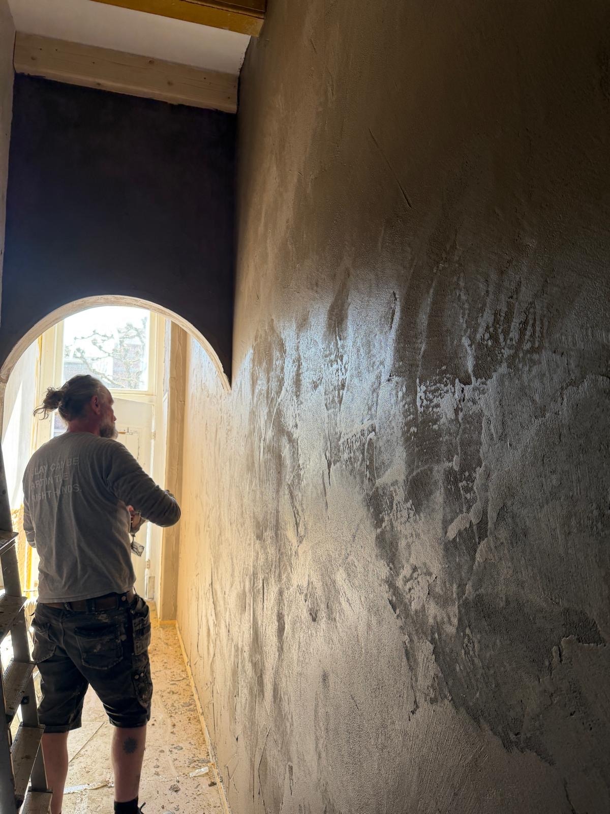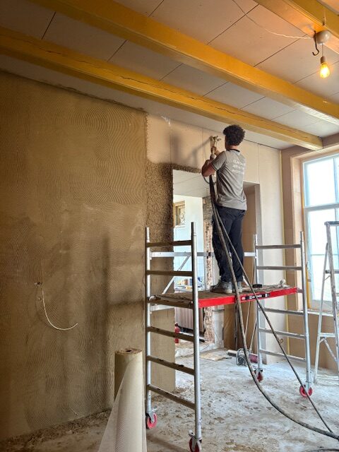 In de oude vestingstad Willemstad, mochten we in een rijksmonument, basisleem en kleurleem aanbrengen over de met houtvezelplaat ge-isoleerde wanden.